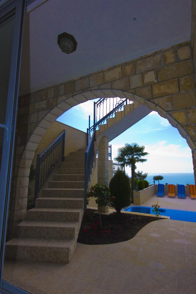 На нижнем этаже находится большая терраса вдоль бассейна для плавания. Нижний этаж составлен из 1 гостиной комнаты, 1 спальной комнаты, 1 ванной комнаты, кухни и террасы, лестницы, которая ведет на первый этаж.