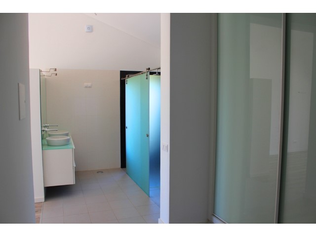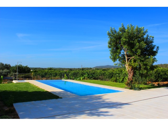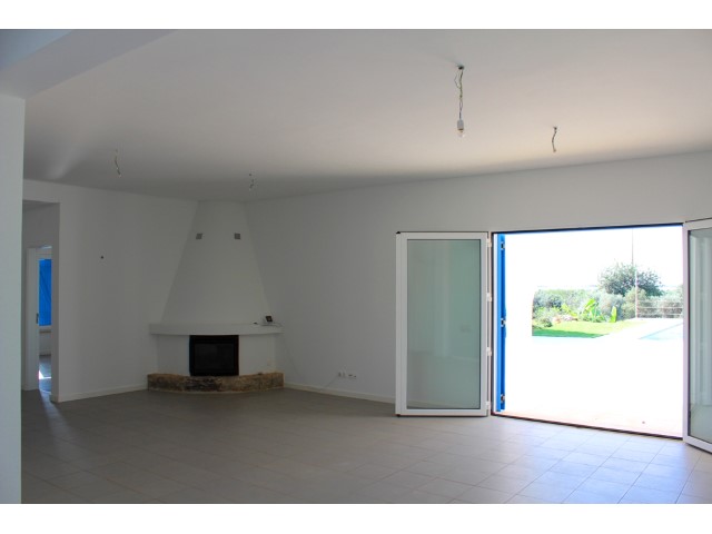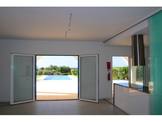 BRAND NEW luxurious 3 bedroom villa, located in Santo Estevão, on a plot of 9990 m2. This very beautiful modern villa has 3 bedrooms, two en suite and dressing room, the third with wardrobe, living room with fireplace and fully equipped kitchen. Solar panels, pre-installation of air conditioning, alarm system and double glazed windows with thermal break. Amazing sea views. Modern finishes. Garden with pool. Plot is fully fenced.