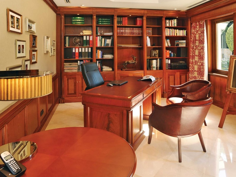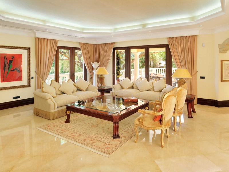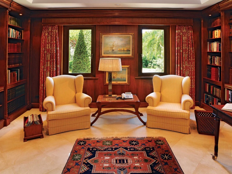 This Villa consists of an entrance hall with doors and stained glass, which gives access to the left to the library, a guest bedroom, a bathroom, the kitchen and the stairs for access to the lower floors. In front it access to the formal living room, the living room and dining room with oval ceiling and fireplace. Living room leads us to the en-suite bedrooms, each with their own closet and bathroom.