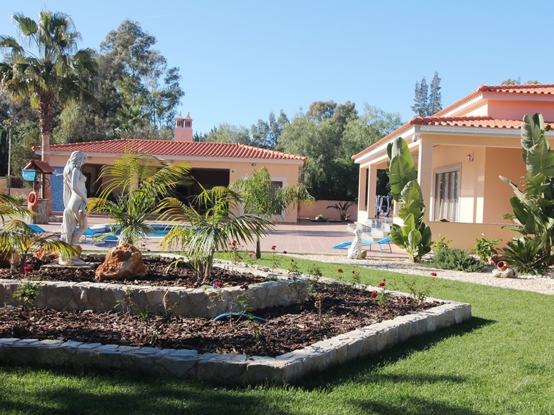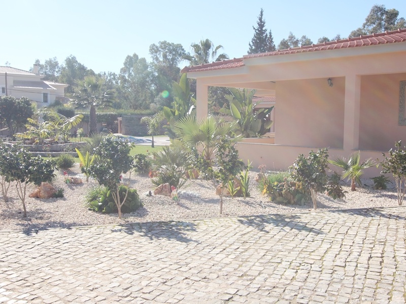 Single storey villa V3 + 1 in luxury condominium with golf course, hotel, airport, 2690m² land area with pool, pool attachment support (area 100m²) with bar, bathroom, kitchen support, bbq, smokehouse, hall with pre installation of Jacuzzi and sauna, utility room and terrace, waterfall with lighting with 19sqm, kennel, small garden, garden with fruit trees and pine bark (easy maintenance), tank with 5000 liters for garden maintenance, cellar and 2 car garage.
