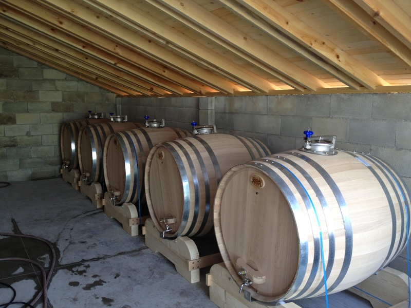 Под навесом избы поставлены 156 деревянных бочек, в которых созревает вино.