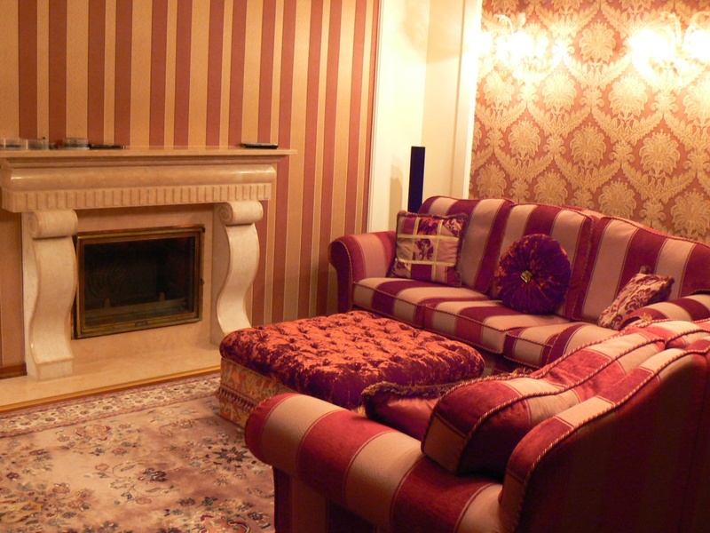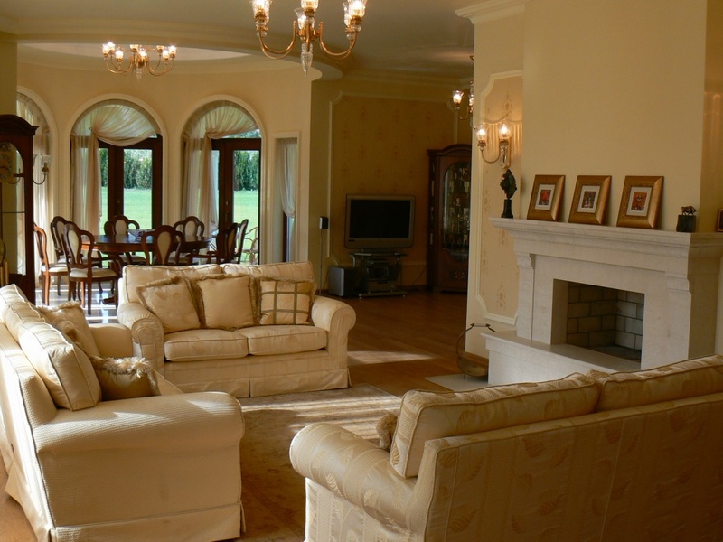 В средней части фойе расположен просторный салон с камином, состоящий из трапезной с большим обеденным столом и зоной отдыха.