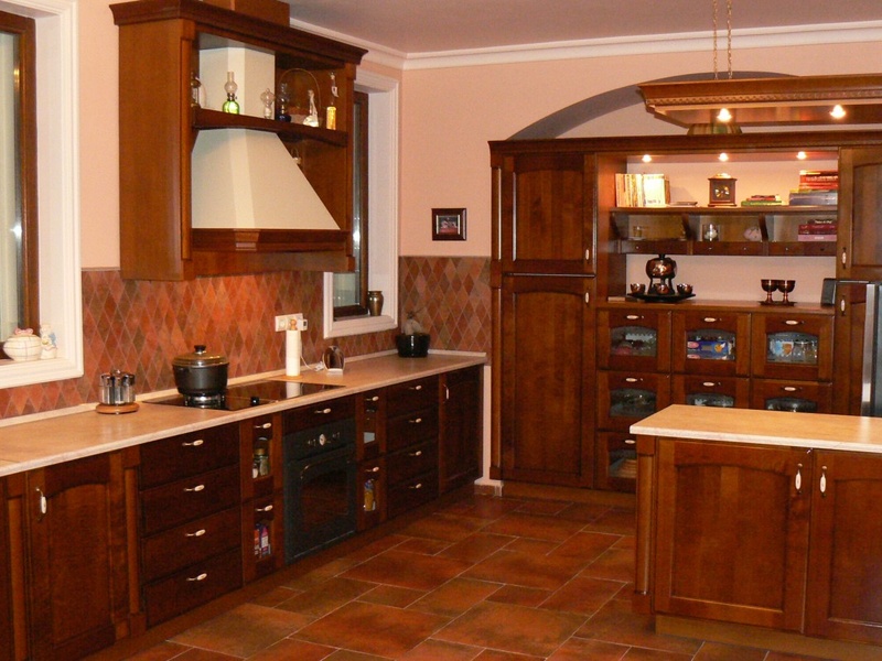 Рядом с салоном располагется полностью оснащённая мебелью и техникой кухня. Кухня имеет собственный выход во двор. Мебель в кухне изготовлена из массива дерева.
