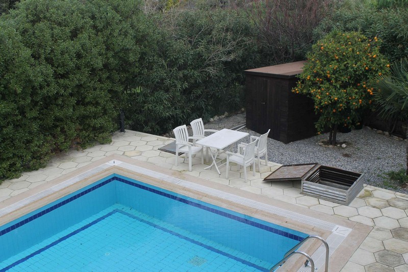 An excellent opportunity to purchase this cozy 3 bedroom villa with fruit trees and swimming pool in the large private garden in a peaceful area of Alsancak, close to all amenities. Main features • 3 bedrooms/ fitted wardrobes • Spasious lounge with fireplace • Open plan kitchen • En-suite and shower room • Ceramic flooring • Air-conditioning • Wooden shutters throughout • 10m x 5m swimming pool • Large garden with fruit trees • Private driveway for 6 cars • Sea & mountain views • VAT paid