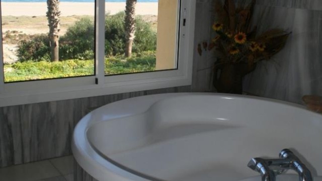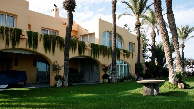 Villa for sale in Puerto Rey, Almeria Spain. One of the most unique villas on the Spanish coast in the area 4,200m2 on the beach with private access to the beach. The villa has 600 m2 with 5 bedrooms, each with en suite bathroom plus a guest house of 300m2. The entrance hall leads to a bright and spacious living room with a magnificent view of the garden and the sea. Kitchen (40 m2) fully equipped with a huge fireplace, separate laundry room and a second small kitchen for cooking. On the ground floor there is a great porch with access from the living room and kitchen to eat and enjoying the breathtaking view of the sea. The upper floor has a second living room with sea view. Large master bedroom with dressing room and bathroom with a large shower and a bath with a full sea view. Marble. The villa has a pool table, hot tub and tennis court. From the garden you have direct access to the beach Vera. The villa also has a guest house of 300 m2 with a large porch, living room, kitchen, two bedrooms and a bathroom. On the second floor there is a separate access via an external staircase and has a third bedroom with a bathroom and a terrace overlooking the sea. The villa is surrounded by tropical gardens with 100 palm trees, bougainvillea. The unique location! 3 double garage with electric gates.