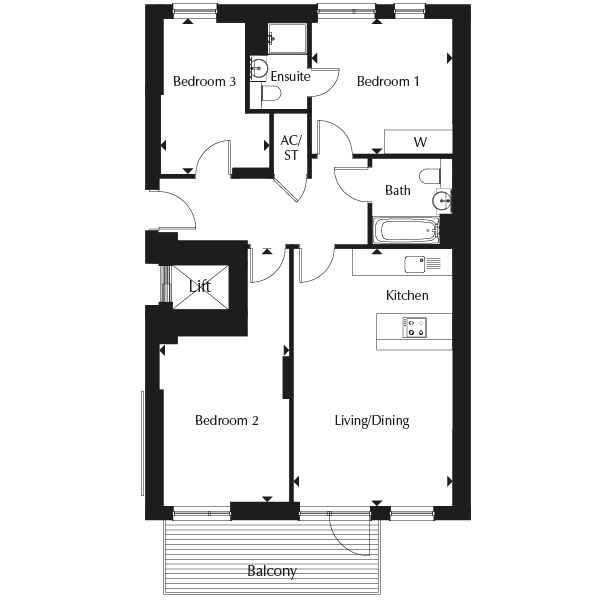 • Prices from: One bedroom: £ 365,000. Two bedrooms: £ 487,000. Three double bedrooms: £ 567,000