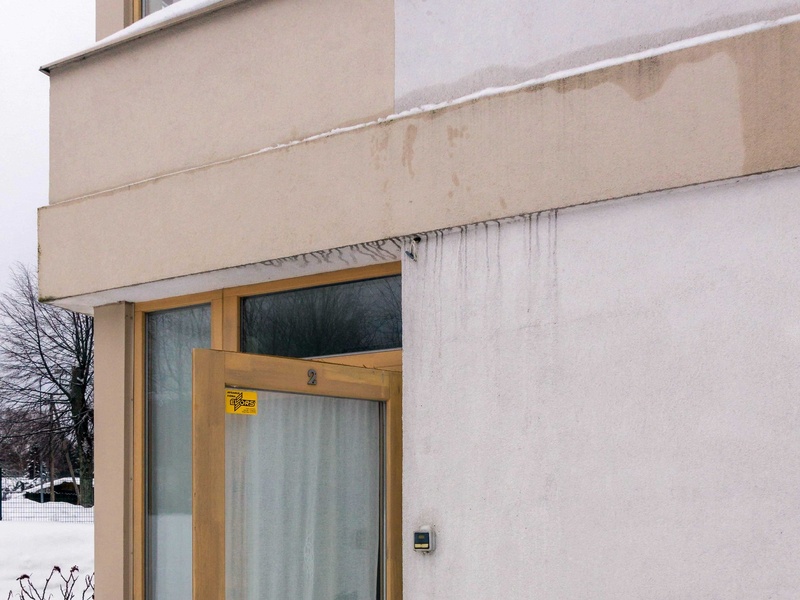 The building has 4 floors with a roof construction and surface parking. The spacious green area around the building has a fenced children’s playground and a garden. The building is surrounded by the River Pēterupe that separates it from the roadside area and the surroundings. The sea is 400 m away (across Pēterupe pedestrian bridge). In the vicinity there are private house neighbourhoods.