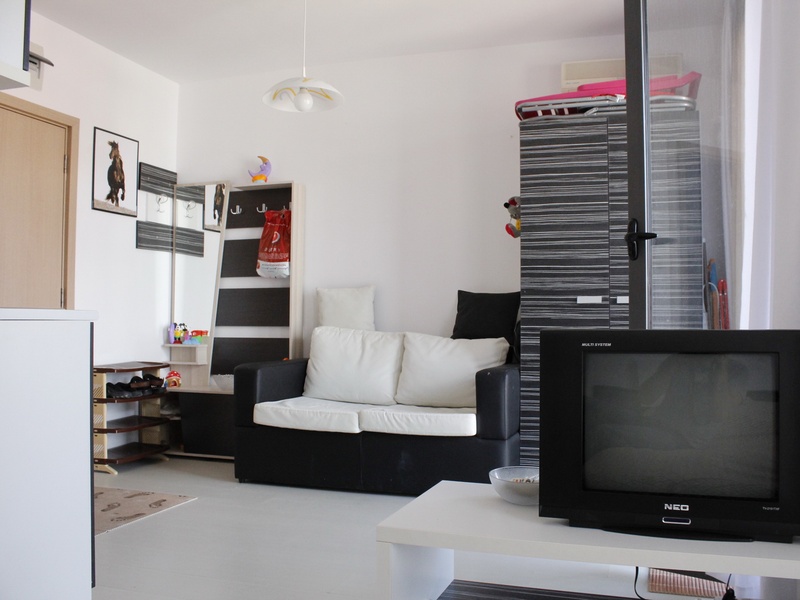 Продаем меблированную студию, площадью – 40 кв.м, в построенном комплексе класса „люкс” на Солнечном Берегу. Квартира находится на 5-ом этаже, и состоит из зала с кухней, сан.узла и балкона. С видом на бассейн. С мебелью и техникой.