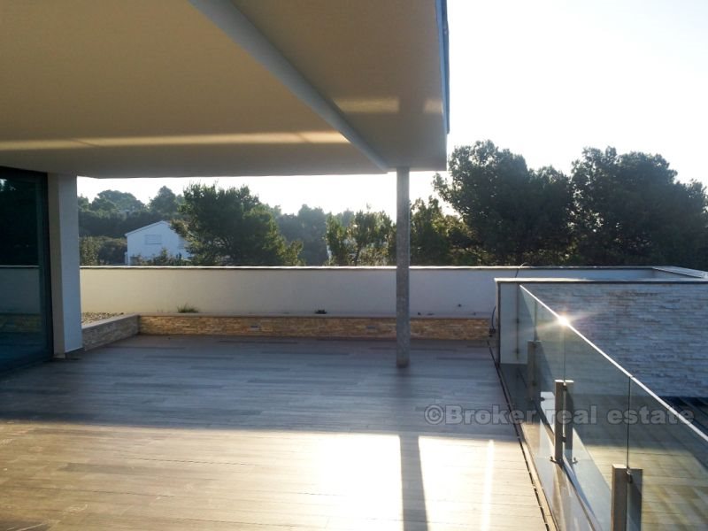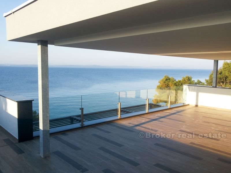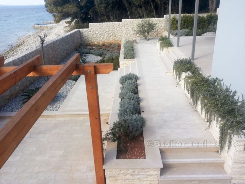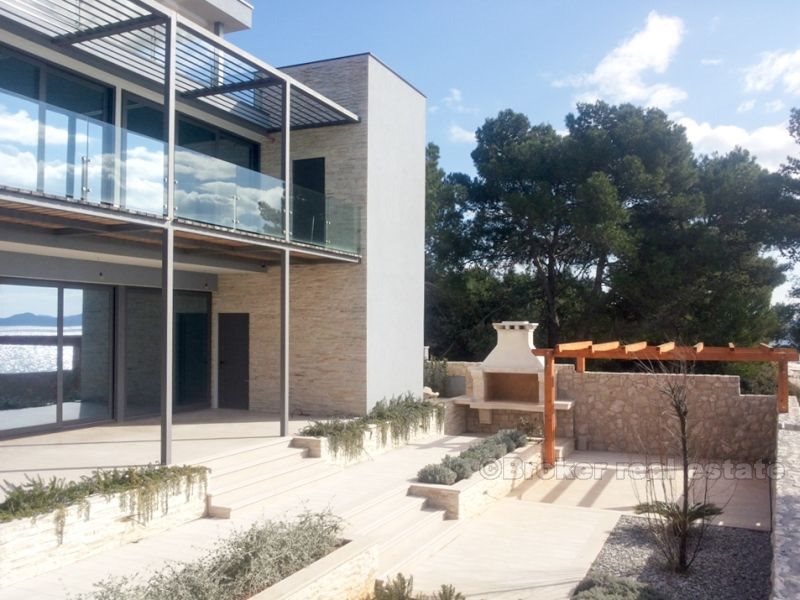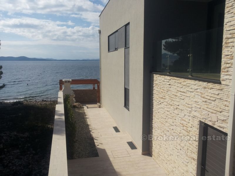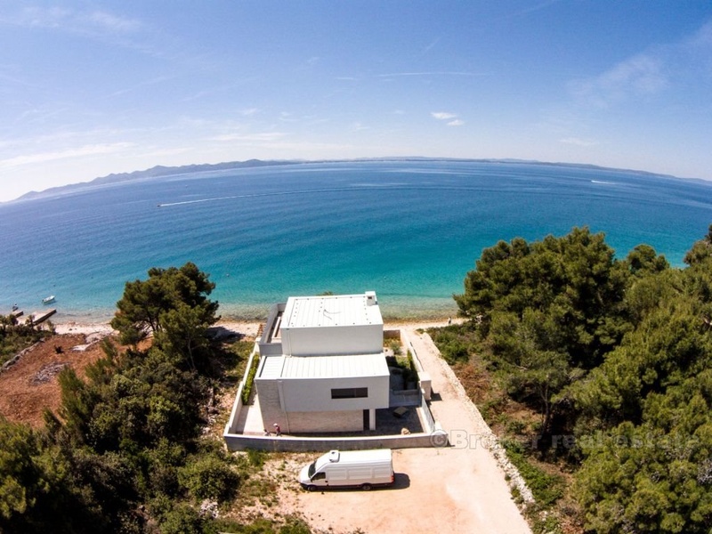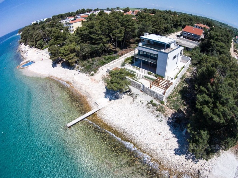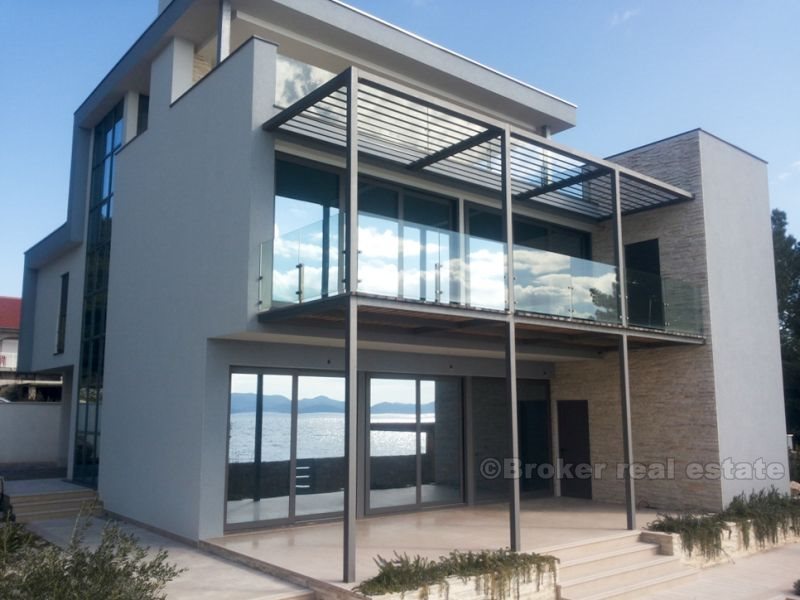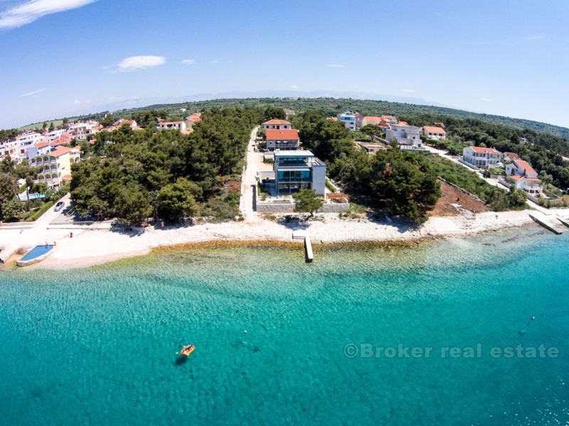 Villa for sale on the beach in Zadar, Zara - a town in Croatia, one of the most important historical centers of Dalmatia, Zadar Archdiocese Department. Located in the central part of the Adriatic coast, the center of Zadar County. The villa is located on the beach, it consists of four floors with a total area of 420 m2 (360 m2 of living space). Fully completed all the (repaired), with the exception of sanitary appliances, ceramics, flooring and interior doors. The first floor - the basement is designed as a space for dialogue, where there is a tavern in Dalmatian style with a fireplace, wine cellar, bathroom, toilet and a place to relax (gym, etc.). Second floor - ground floor consists of a garage, a room for technical equipment (central boiler, heating, etc.), bathroom with a short corridor for clothes, living room, dining room, kitchen and space for art. Third floor - a sleeping area consists of two studio apartments with separate dressing room, comfortable bathrooms, and a private bathroom in the hallway and another room with a sea view (three bedrooms). Fourth floor - roof terrace, solarium with jacuzzi 2x2m, a bar and a sauna.