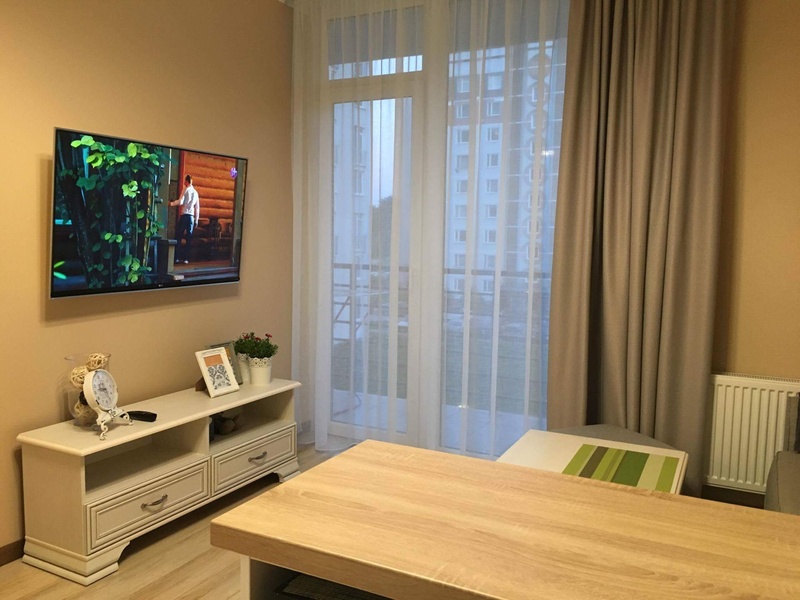 2 комнаты, балкон, ремонт (2016 г.) с использованием качественных и дорогих материалов: гостиная и кухня studio типа, просторная спальная комната. Высокие потолки (2.7 м), панорамные окна, в квартире светло и солнечно на протяжении всего дня, вид на озелененный двор, тихо. Индивидуальные счетчики отопления, которые позволяют регулировать температуру в квартире и существенно снизить коммунальные платежи. LED освещение. В коридоре и спальной комнате установлены вместительные встроенные шкафы-купе. Удобная и функциональная кухня, изготовленная из качественных материалов (Egger, BLUM), оснащенная всей необходимой бытовой техникой. Ванная комната с качественной сантехникой испанских и чешских производителей, подогреваемый пол с возможностью регулировать температуру и настроить автоматический обогрев. Квартира продается с мебелью и предметами интерьера, бытовой техникой и прочими бытовыми принадлежностями.