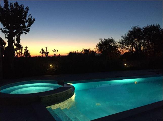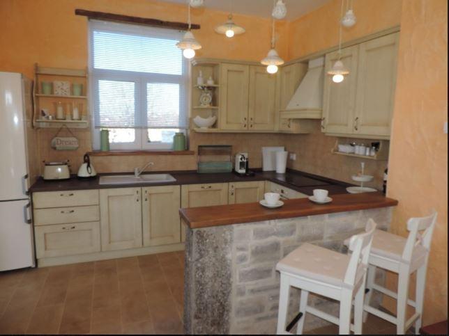 This beautiful stone house was designed with great attention to detail. A hallway with guest restroomopens up the floor and up the stairs to the upper floor and down into a tavern. A bedroom with en suite bathroom and separate terrace, which can also be very well used as an office. The spacious living and dining room has an impressive ceiling height of about 3 m and combines this with a warm, Mediterranean atmosphere and a fantastic view of the sea in the west. Eyecatcher is the big, beautifully designed, open fireplace light sandstone. The integrated kitchen in French country style is fully equipped and offers plenty of storage space. The entire living and dining area is surrounded by covered terraces. A generous staircase with large window to reach the upper floor with a total of 3 rooms. The master bedroom has an en suite bathroom, a dressing room and a small balcony. The other 2 bedrooms share a bath and go to a large covered balcony overlooking the sea. The bathrooms combine skilfully elements of country style with elegant Italian design and tile. Unusual lamps and chandeliers on walls and ceilings emphasize the Mediterranean atmosphere and in conjunction with crown molding and warm, earthy color schemes created a wonderful atmosphere to relax. All rooms have a magnificent view of the Istrian countryside and the sea. Equipment * Plot completely surrounded by a high stone wall, with electric entrance gate * Alarm and video cameras * Internet connection with 4 MB and WIFI * LAN instalations and satellite antennas in all rooms * Air conditioning (hot and cold) * Central underfloor heating with solar / electric * Energy efficiency class A * Swimming pool with Jacuzzi can be heated by solar * Tavern in the basement with fireplace and kitchenette * Barbecue house as a summer kitchen with fireplace * Autom. Irrigation * Furnished incl. washing machine The property offers panoramic sea views and is located approximately 20 minutes from Porec and Vrsar near Baderna between olive groves and grapevines. Baderna and its surroundings offer the shopping, great restaurants and bars. The basement has been created as a tavern and decorated with old oak beams and roof tiles and attention to detail. An open fireplace, spacious seating areas and a kitchenette a convivial evenings in a cozy and rustic atmosphere, a small wine cellar and a toilet. The high-quality tile floors in wood design and bright veins stretch stylistically through the whole villa and the terraces. The outdoor area with large swimming pool and Jacuzzi is surrounded by natural stone slabs and lawns. A barbeque house with fireplace and summer kitchen is another attraction. The plot is fenced by a high stone wall with integrated lighting and has an electric wrought iron gate. In conjunction with a harmonious shade gives a good view protection and privacy to relax.