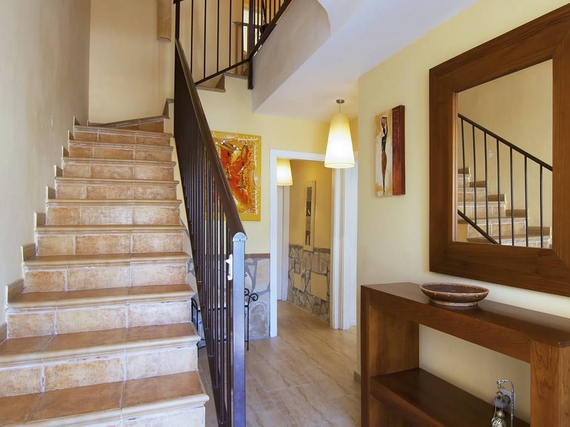 The house is fully furnished, semi new. The first floor has 3 double bedrooms, one with aircon hot and cold air and en suite bathroom. On the same floor is a toilet with shower . The second floor has a living room with hot and cold air conditioning, wood fireplace, shower room, fully equipped kitchen. From this floor there is access to the pool and terrace, barbecue area and sea views.