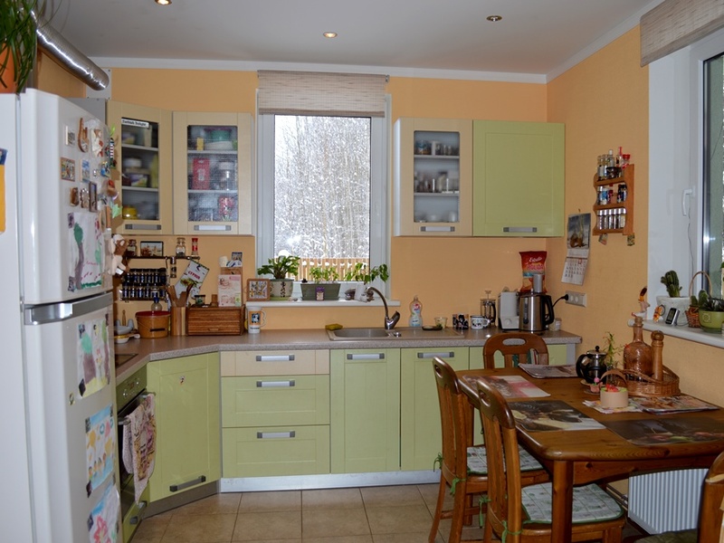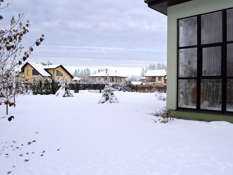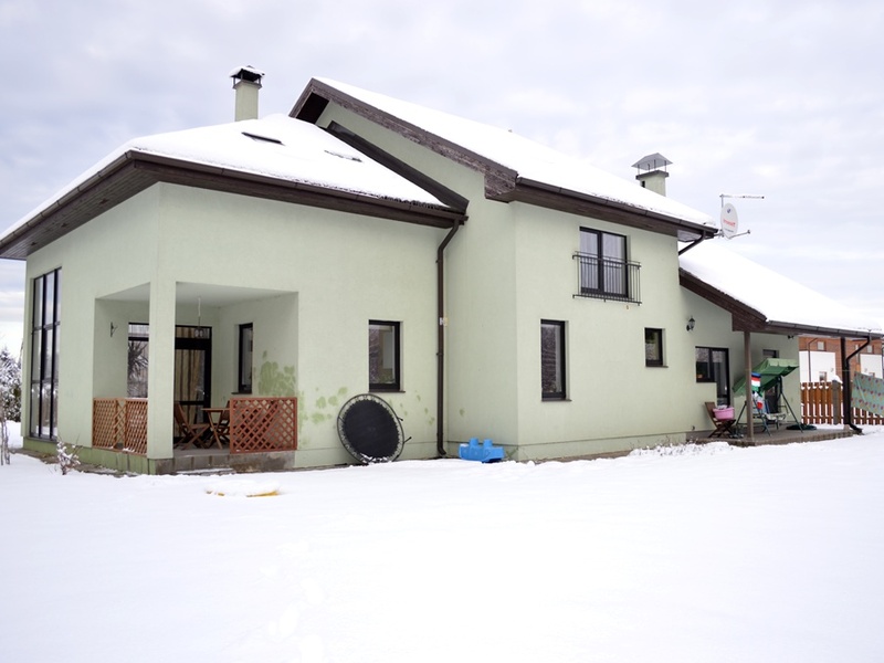 Closed the village "Bišulejas". The streets are paved and lighted. The House was built in 2009, in the main-2012. 1. floor - corridor, hall, large living room, kitchen, room, bathroom, technical room, warehouse and garage for 2 cars. 2. floor - 4 bedrooms, 2 bathrooms and wardrobe. In bathrooms heated floors. Ladders and doors from osh. Spacious loft. 2 terraces with shelter. Fruit, berries and flower garden. The House is located near the Woods. The central water and sewerage (165 m). Gas heating. Satellite TV and the internet