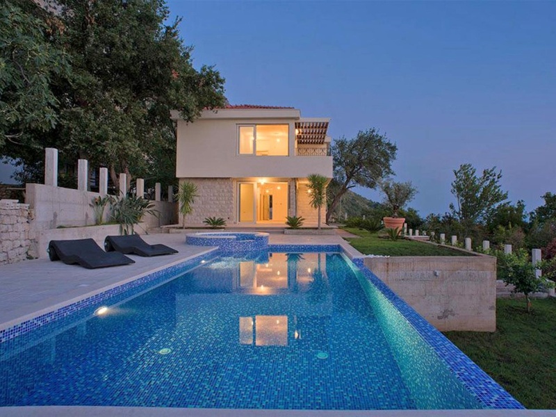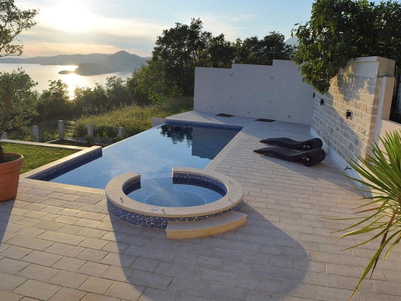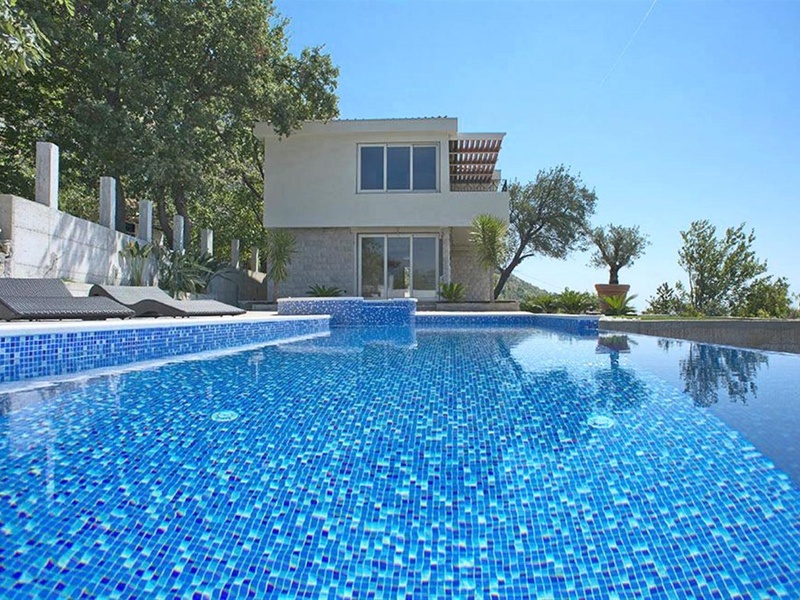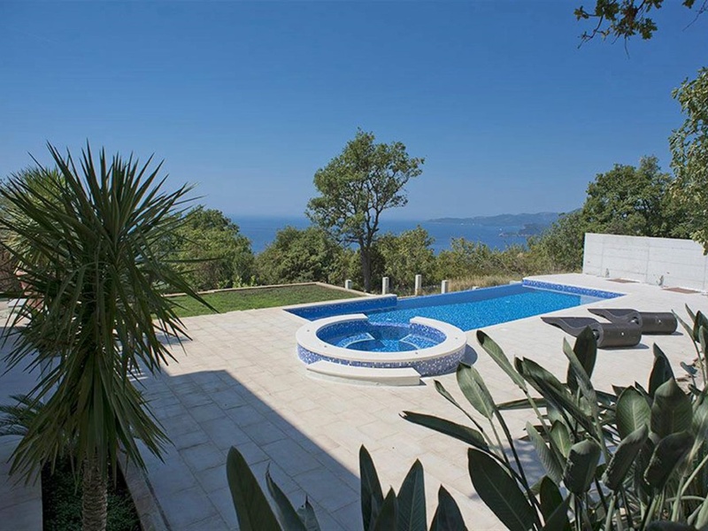 Великолепный дом построен на просторном ландшафтном участке площадью 785 м2 в поселке Близикуче, недалеко от Св. Стефана и в 7 км от Будвы.