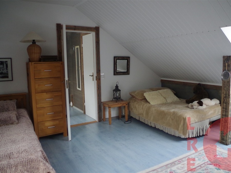 For sale house with an area of 180 m², there is, a large and elegant decorative garden with paved paths. Basic seedlings in the garden of coniferous plantings and roses. The house is suitable for independent living and farming as well as for leisure. 3.08 hectares of land has its own forest and pond, a fruit tree garden, a shed for firewood, a sports ground. Home heating is provided with two fireplaces and an air stretching system throughout the house as well as electric radiators. Water - spice 40 meters, 3 phase electricity, local sewerage. Internet, alarm, as well as fire alarms, windows have built-in metal blinds, roof Velux windows, sun blinds. The house is sold with all furniture and interior items, as well as garden equipment and garden interior items. The property is a 10-minute drive from Tervete Nature Park, Lake Swan and a quarry with built-in swimming and recreation areas (boat, water bike, catamaran rental, fishing). To Riga for 1 hour by car. Ideal place to relax - nearest neighbors 1 kilometer away, while shops, restaurants, cafes are 10 minutes away by car.