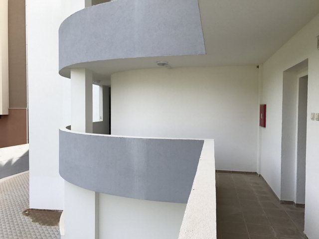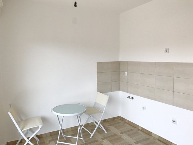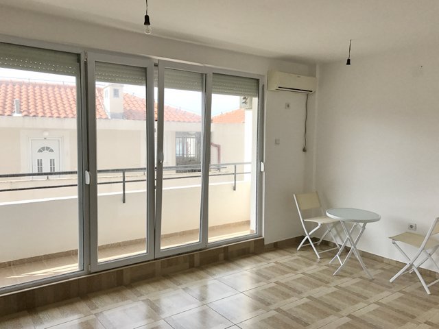 The studio is 32 m2 and consists of a living room combined with a bedroom and a kitchen, a bathroom and an open balcony. There is no sea view, but you can enjoy the view of the city.