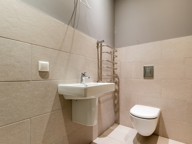 Просторная ванная комната: 5,5 м2. Новая, качественная шведская сантехника Svedbergs. В ванной комнате - полы с подогревом.
