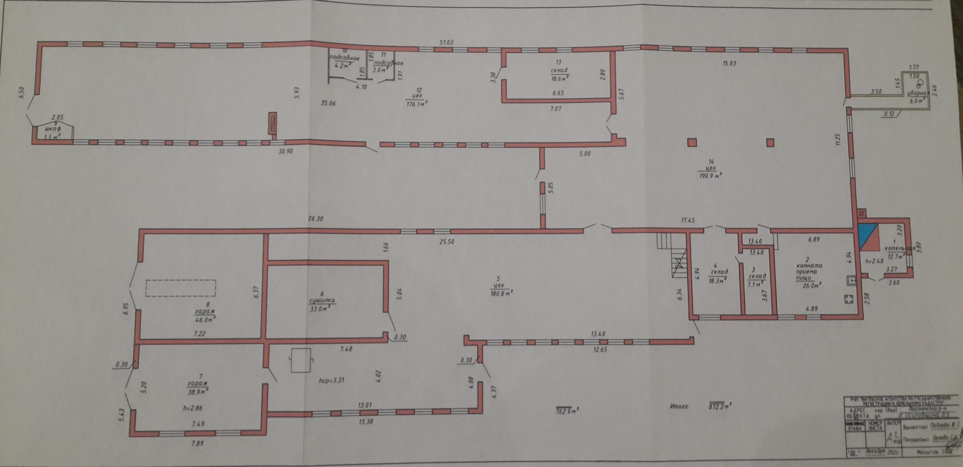 The area of the premises is 872 m².