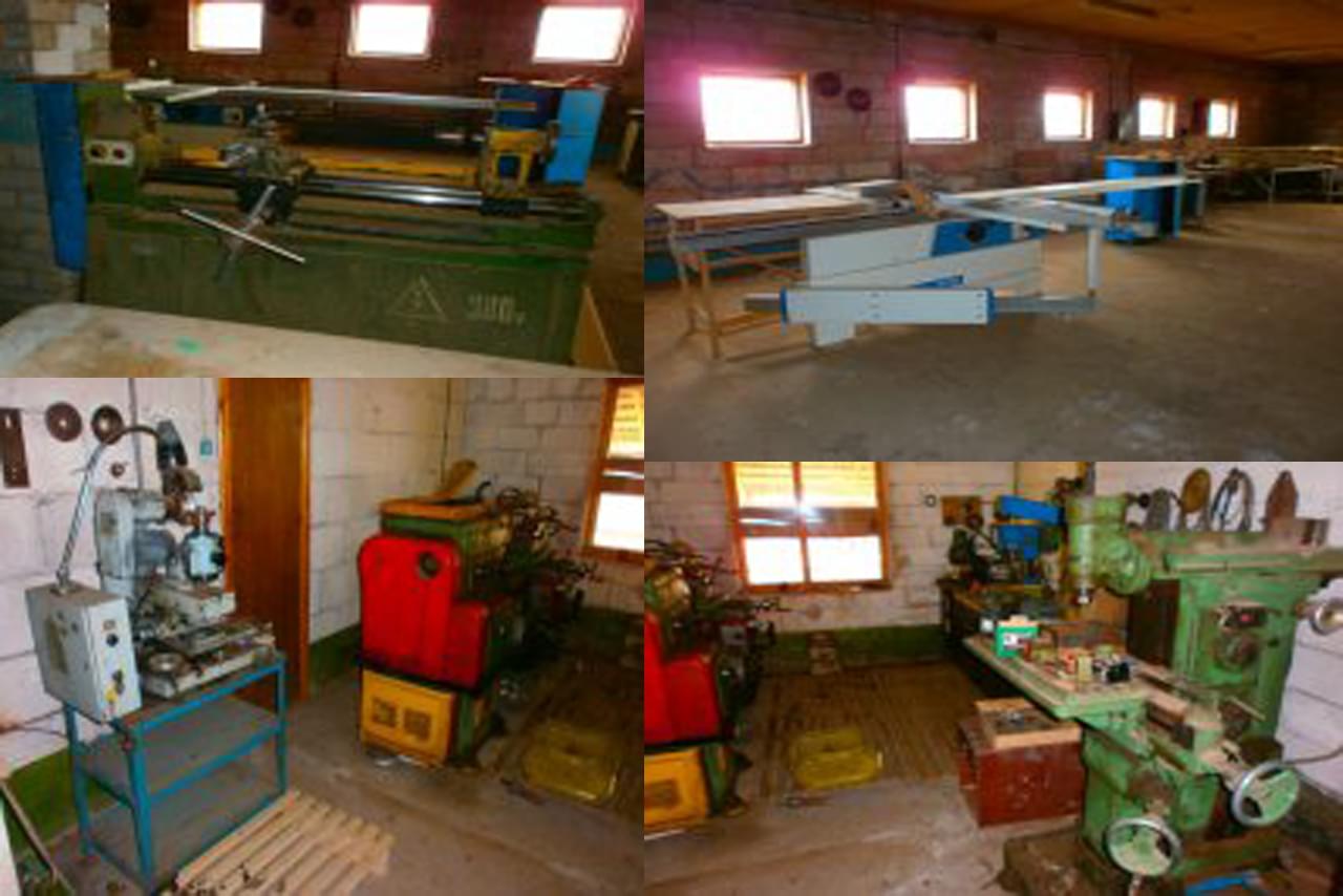 mechanical shop: universal lathe for metal 1к62, universal milling machine for metal, machine for sharpening knives saws, emery machines, drilling machines and others;