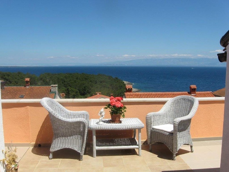 The apartment is located in the center of Mali Lošinj and completely occupies the last floor of an urban villa. It consists of 2 bedrooms, living room with dining room, kitchen, bathroom and 2 terraces. The apartment was completely renovated in 2013 with top quality natural materials and complete noise insulation. Also, in 2017 it has an extended terrace throughout the apartment and has an open panoramic view of the sea and the islands. The apartment is air-conditioned and in each room are wooden oak parquet floors, while the bathrooms and kitchens have high quality tiles. The apartment has one parking space and a landscaped garden of 69 m2. The sea takes only 3 minutes of light walks.