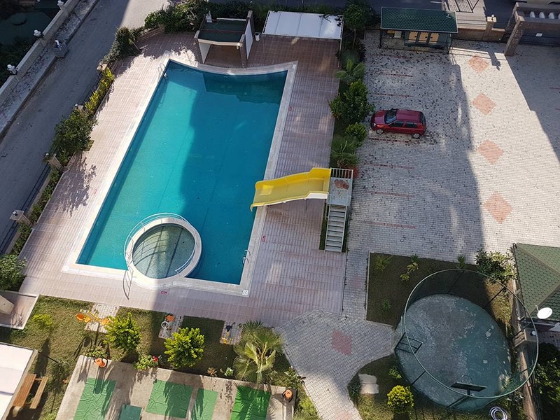 Apartment (secondary sale) in Mahmutlar, in an infrastructure-developed complex in the center. In the apartment: furniture and appliances, kitchen, plumbing, steel door, water heater, hall, combined with the kitchen, videophone, shower, air conditioning. In the complex: pool with slide, sauna, Turkish bath, fitness room, golf course, playground, place for rest and barbecue, indoor pool, generator, video surveillance.