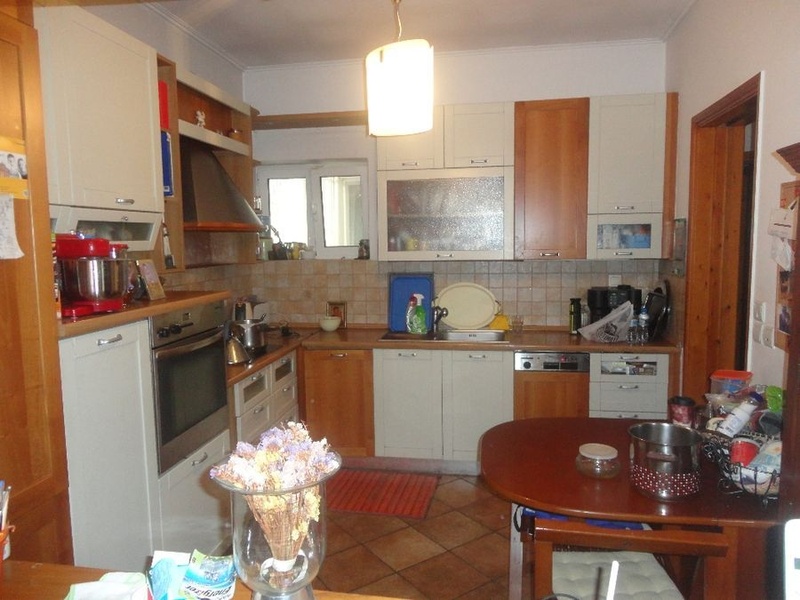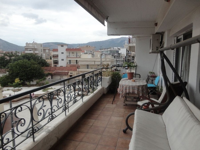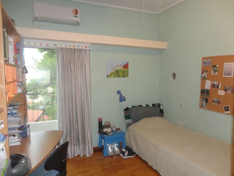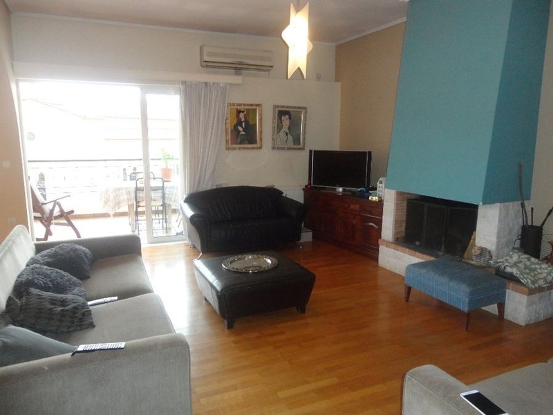 Flat for sale in Koropi, a town in Eastern Attica, Greece. The apartment has 190 m2, is on the 3rd floor, built in 1999. The apartment consists of 3 bedrooms, a games room with separate entrance, living room with fireplace, kitchen with electrical appliances, bathroom, 1 toilet, inner pantry, individual heating, boiler, alarm, double glazing, awnings, wooden floors, sea views.
