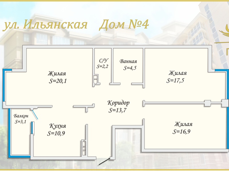 4 - комнатные квартиры 109,6 кв. м, 110 кв. м.