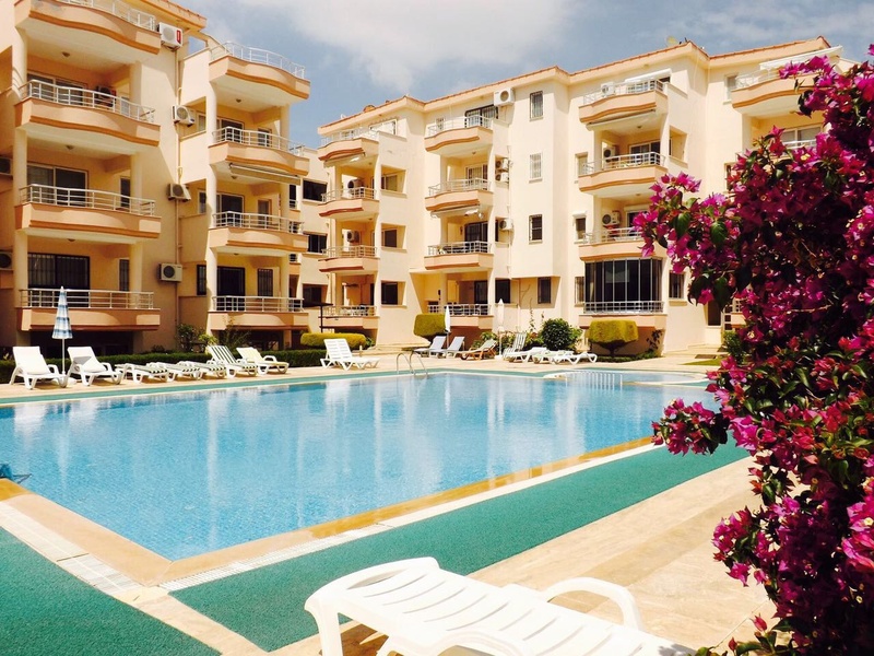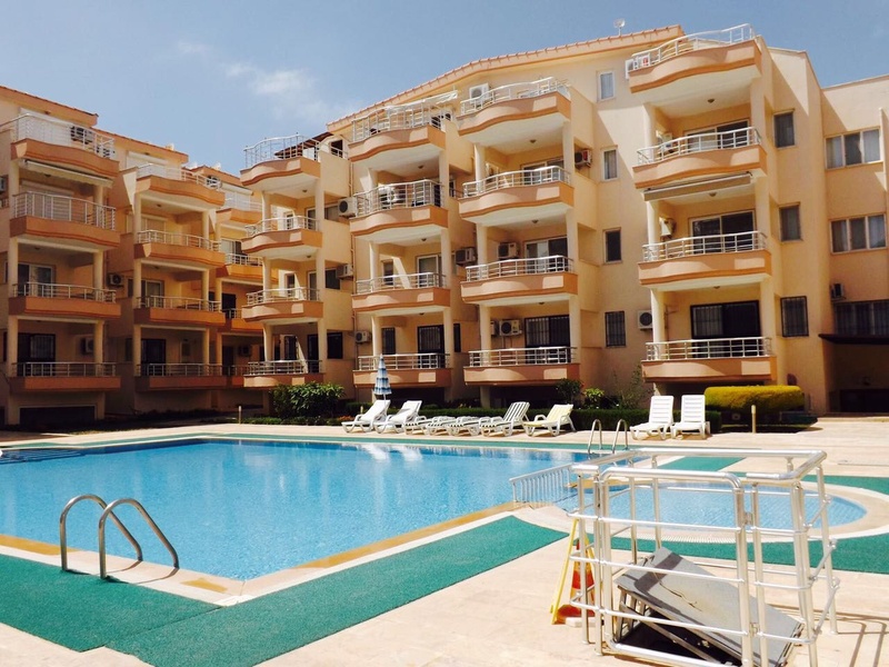 Продаются апартаменты на 2 этаже в комплексе с бассейном. 2 спальни, 1 гостиная с открытой кухней, 1 ванная, 1 балкон, продаются с мебелью. До моря 500 метров