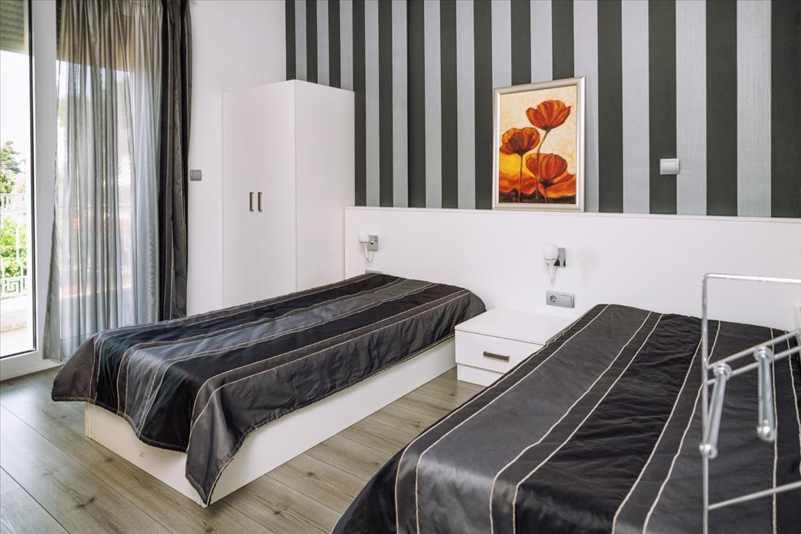 For sale is a 3-storey villa with an area of 450 sq. M on the peninsula of Sithonia, Halkidiki region. The basement consists of one storage room. The first floor consists of one bedroom, living room with kitchen, one bathroom, one shower room, 2 storage rooms. The second floor consists of 4 bedrooms, 2 bathrooms, one shower room, 2 bathrooms. The villa has a corner location. Has a magnificent view of the sea, also has furniture, armored entrance doors, solar panels for heating water, fireplace, air conditioning, garage, heating, alarm, utility room.