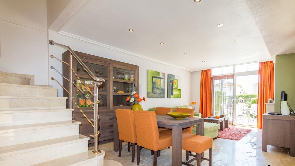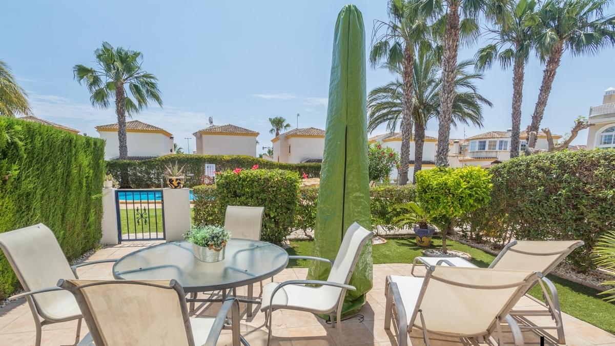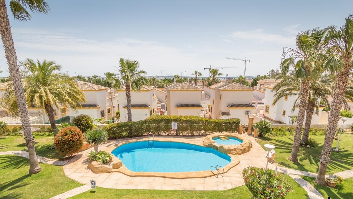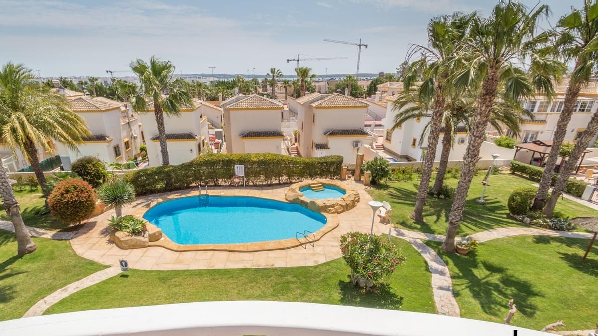 FOR SALE Ref-2969 Stunning 2 bed, 3 bath Semi Townhouse, El Raso, Guardamar, Alicante. €169.900,- Wow, what an incredible property we have for sale in the super popular area of ͚El Raso͛. This immaculate semi-detached, south facing townhouse is part of a stunning small community with wonderful gardens and pool area. El Raso is a residential area set between the very popular town of Ciudad Quesada and Guardamar and next to the ͚La Mata͛ natural park and lake. The property itself on the ground floor has a large open lounge and dining room, a separate wc and wash basin, a separate kitchen, understairs storage and an ornate marble staircase leading to the first floor. Here you find the two double bedrooms both benefitting from large en-suite bathrooms. The stairs carry on up to a large roof solarium giving incredible views over the development and on to the lakes and the Med. The property boasts split zone air-conditioning and heating and is being sold fully furnished with all very high-quality furniture. This property also has off road parking (unless you have a Cadillac) and the private gardens are maintained by the community gardener meaning life is easy with this exceptional property. Gorgeous communal garden and swimming pool. Must be seen !!! and a nice Free Gift Voucher (promo code HS1222)