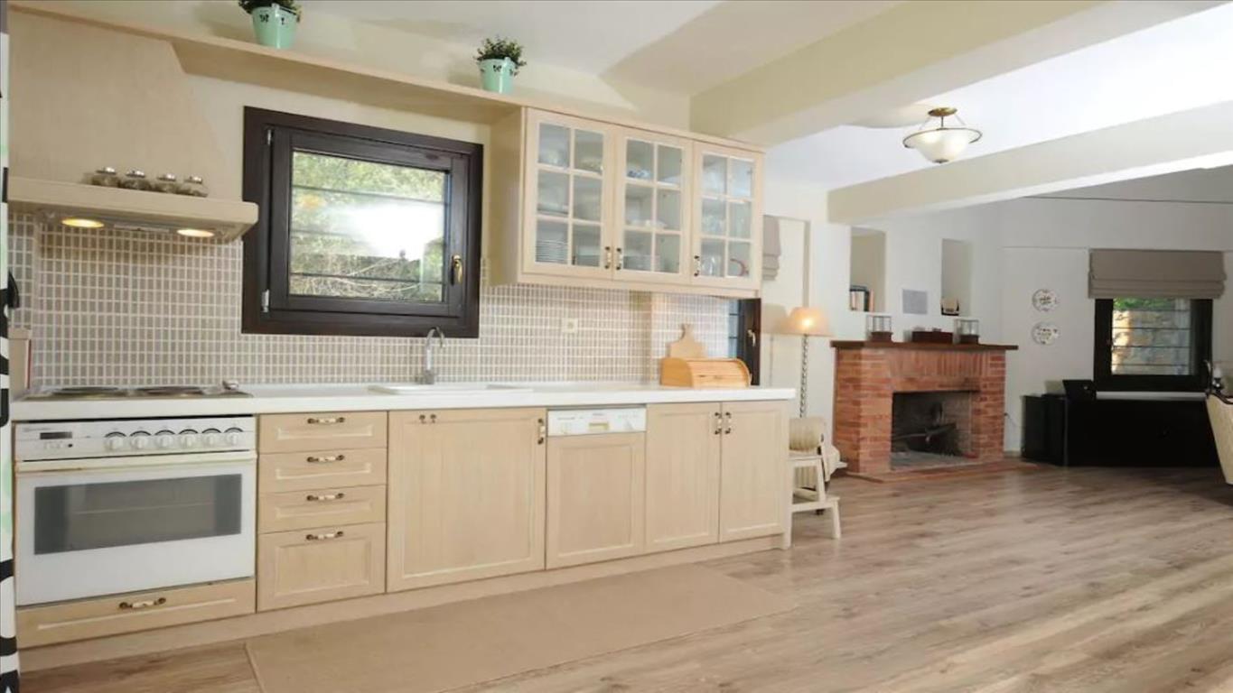 For sale is a 3-storey cottage with an area of 161 square meters on the peninsula of Sithonia, the Chalkidiki region. The basement consists of one shower room, one storage room. The first floor consists of one bathroom. The second floor consists of 2 bedrooms, one shower room. Has a magnificent view of the sea, the mountains, the forest, also has furniture, armored entrance doors, fireplace, garden, utility room.