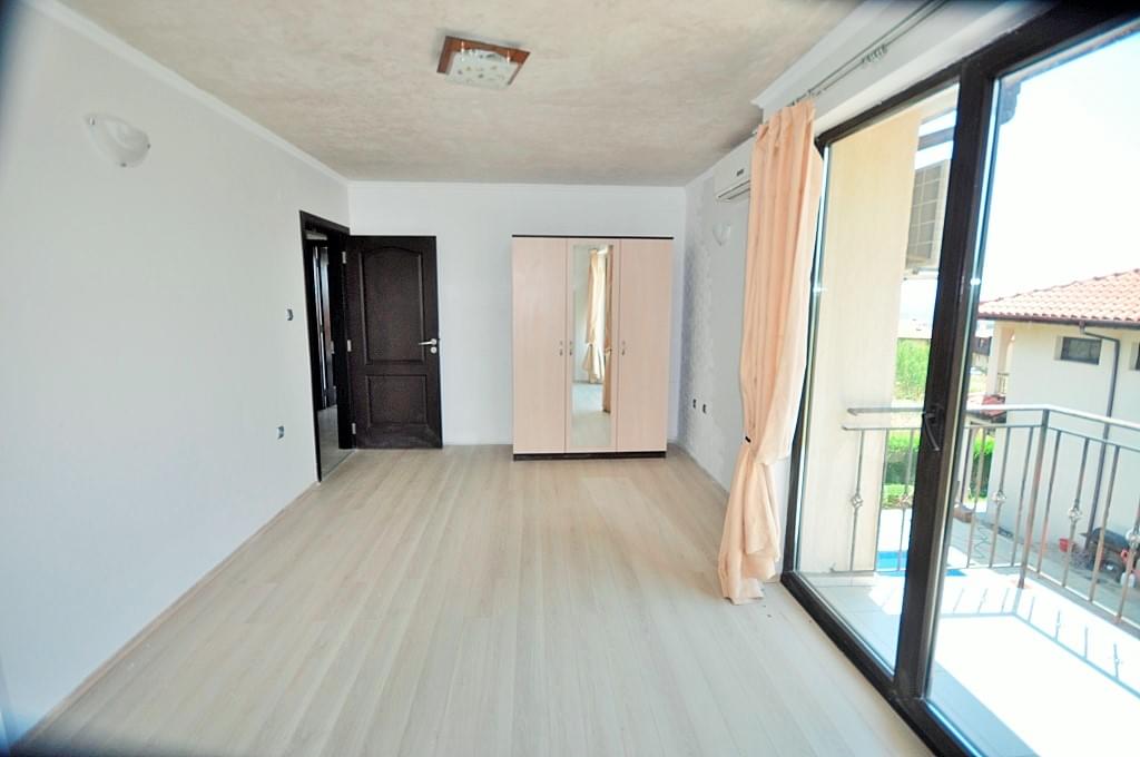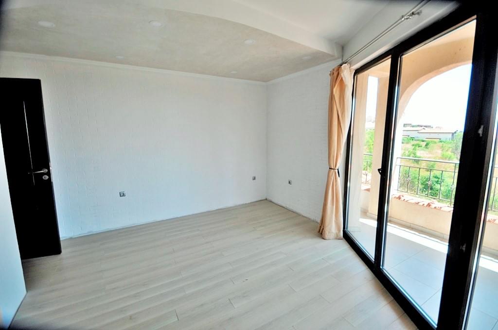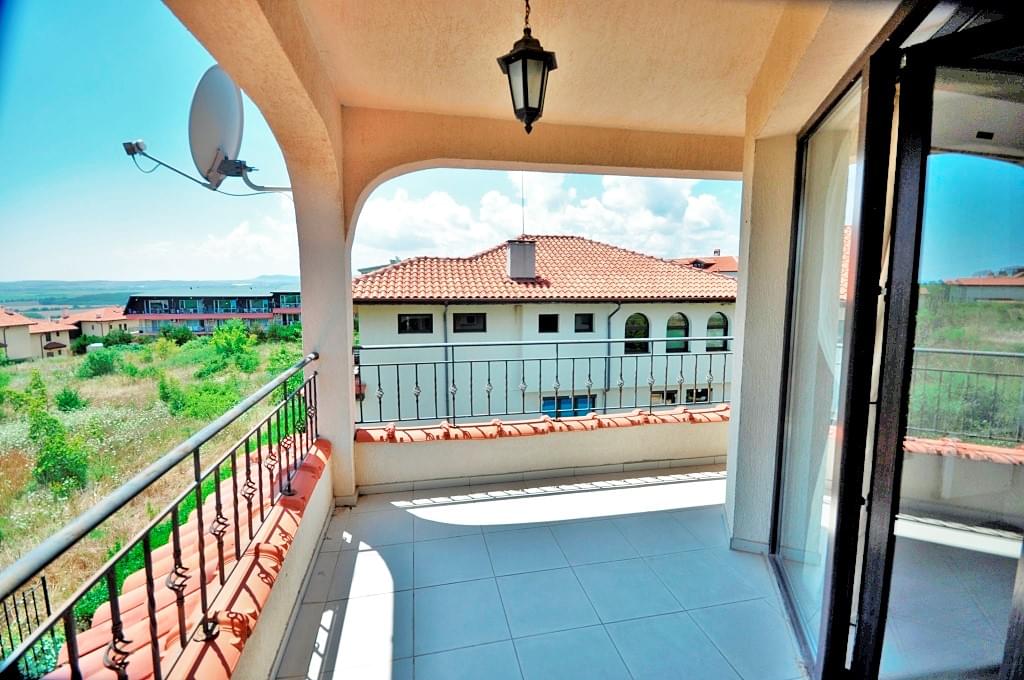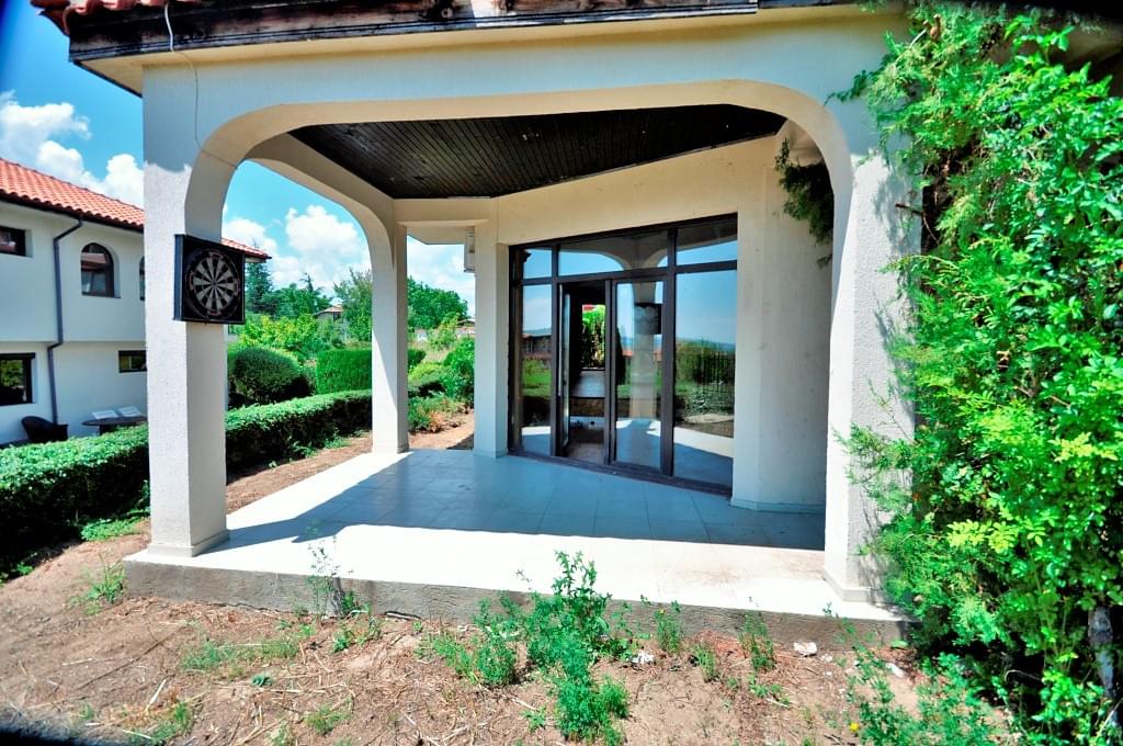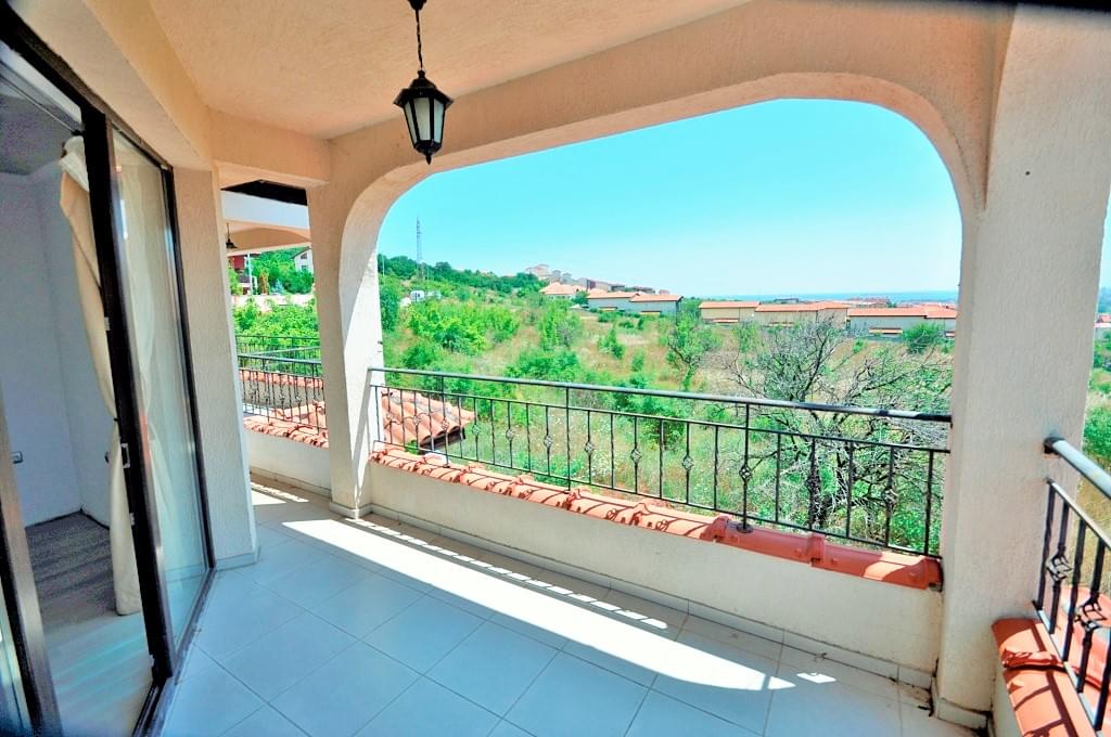 Arco Real Estate offers for sale a two-storey house on the Bulgarian Black Sea coast. The house is located in a small cozy complex in the villa zone of Kosharitsa. The second-floor terrace offers views of the sea and the Sunny Beach resort, which is only a 5-minute drive away. The complex consists of only 2 villas with shared pool.