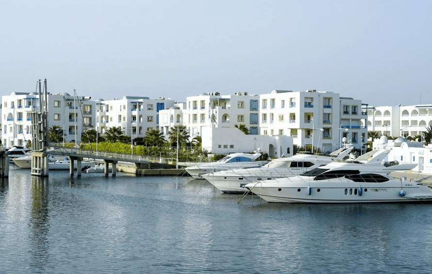 For sale a spacious apartment at the marina Yasmine Hammamet of 221m2 gross and 164 m2 net with clear and pleasant views of the marina .