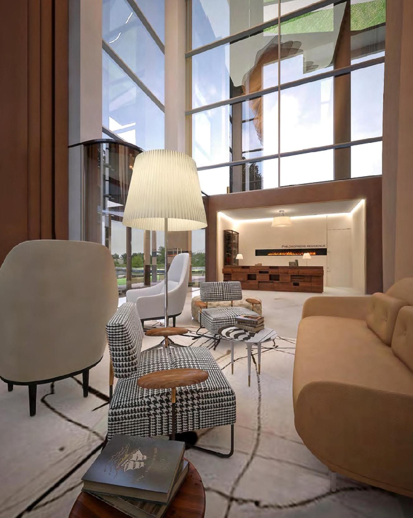 The Residence of Philosophers is located in a well-maintained 4,200 square meter area. The project consists of 2 apartment buildings (22 and 23 floors) connected by an underground car park.