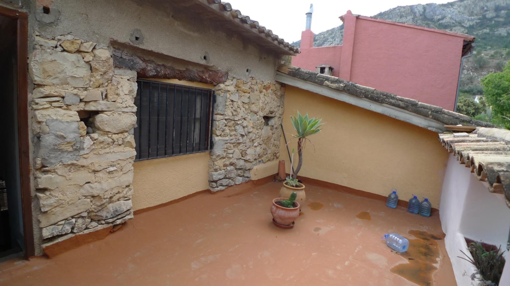 This property is located on a very quiet street in the picturesque village of Benimaurell (Vall de Laguar). As soon as you enter the house, on the right you will find a minimalist kitchen and a beautiful dining room that is directly connected to the living room. From here there is access to a storage room/patio and a staircase that leads to the upper floors. On the first floor there is a bathroom with utility room, a bedroom and a living room/office. The stairs leading to the second floor have direct access to the rear terrace as the second large bedroom has its own terrace overlooking the sea and the Denia coast (on a clear day you can see Ibiza) The house is in need of a little renovation.