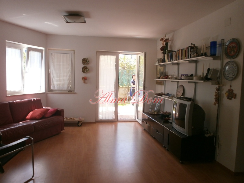 Продается квартира на первом этаже жилого здания в Ровине площадью 75 м2. Квартира состоит из двух спальных комнат, ванной комнаты, небольшого туалета, прихожей, где находится встроенный шкаф, кухня с обеденной зоной.