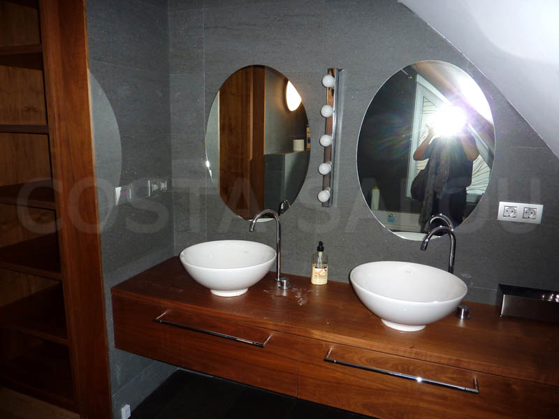 Здание 2-этажное, салон – столовая площадью 60 кв.м, всего 5 спален, 2 из которых объединены с ванными комнатами с гидромассажным душем (типа «сюит»), есть ещё 3 спальни, для которых предусмотрена ванная комната с гидромассажным душем и также ванная комната с видом на бассейн и на сад, террасы общей площадью около 200кв.м. Кроме того в цокольном этаже имеются отдельные апартаменты с ванной комнатой в цокольном этаже для прислуги. Имеется бассейн, сад, внутренний дворик, гараж на 2-3 автомобиля. Установлено спутниковое телевидение, Wi-Fi, система кондиционирования «тепло – холод», камин. Дом полностью меблирован, оборудован бытовой техникой, оснащён всеми необходимыми принадлежностями для приятного отдыха, есть охранная сигнализация.
