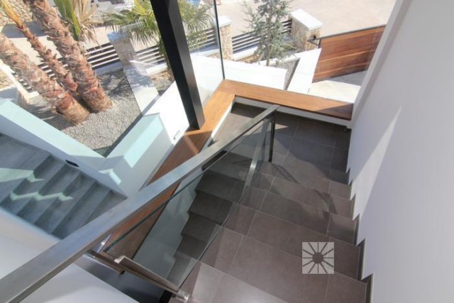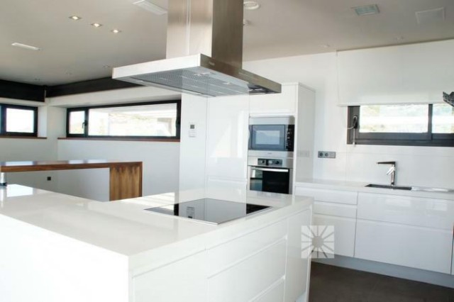 Строительство новой ультрасовременной виллы в эксклюзивном резиденциальном комплексе Jazmines, в районе Кумбре дельСоль, между Хавеа и Кальпе, в 5 минутах от Коммерческого Центра, 2 км до пляжа. Современный проект, приватный и безопасный, предназначен для удовлетворения самых взыскательных и требовательных. Недвижимость состоит из двух уровней: на нижнем этаже находится гараж, приблизительно 80 кв.м., вместимостью на 3-4 автомобиля, огромная кухня, по дизайн-проекту с эффектным островом в центре, которая сообщается со столовой, верандой и зоной барбекю, здесь же находятся кладовая, прачечная и туалетная комната. Несомненно, основное внимание притягивает салон-гостиная, где впечатляет шестиметровая высота потолков и стеклянные стены, которые позволяют наслаждаться солнечным светом и восхитительными видами на море. Отличительной деталью верхнего этажа является Главная спальная с приватной террасой 41 кв.м., которая впечатляет своими размерами, около 34 кв.м., и состоит из зоны отдыха, гардеробной и ванной комнаты, где есть джакузи и душевая кабина. на этом же этаже располагаются ещё три спальни, каждая из них имеет встроенный шкаф и ванную комнату en suite. Зону отдыха верхнего этажа завершает просторный салон-кинотеатр. Дополняет эту виллу ландшафтный сад, спроектированный из различных элементов: веранда, чтобы наслаждаться морским бризом, зона барбекю для пикников на открытом воздухе, огромная терраса, чтобы загорать, и великолепный бассейн “инфинити”, который сливается с бесконечностью Средиземного моря. На стадии строительства, возведены стены, сдача объекта летом 2013 года. Дом построен на участке 1.045 кв.м имеет общую площадь 587,55 кв.м. с полезной площадью 276, 55 кв.м Верандa 34.30 m2 Наружная терраса 117,70 m2 Гараж c пандусом и aвтомат-ворота 159 m2 Пергола 34,30 m2 2 холла Полностью мебелированная кухня Столовая 4 спальни 5 С/Узлов Бассейн-Инфинити с подсветкой, поверхность воды 65,60 кв.м. Стены по периметру из натурального камня Солнечные панели Аудиосистема Динамики интегрированные в потолках установлены в кухне, спальнях и ванной комнате, от B & W или аналогичной марки, проигрывание multi-room аудиосистемы с помощью дистанционного управления. Кинотеатр Предварительная установка для кинотеатра в гостиной, в соответствии с планом. Мультирум аудиосистема SONOS или аналогичной марки, с использованием различных аудио источников, подключенных к сети Ethernet: компьютеры, плееры, мультимедийные жесткие диски, интернет-радио, интернет услуги и т.д. Солнечные коллекторы Солнечные панели для производства горячей воды в соответствии с действующими нормами. Вентиляция Система вентиляции жилья с помощью установки решетки воздухозаборника Видеонаблюдение Система видеозаписи интегрирована в системы домашней автоматизации, состоящая из 4 внешних камер, просмотр записей с любого компьютера, подключенного к сети дома. Кондиционирование Термостаты для индивидуального регулирования температуры в каждой комнате, интегрированы в системе Умный Дом. Контроль Главная Система автоматизации контролируется с помощью электрических переключателей и domotic колодки, 12" цветной сенсорный экран, установленный на стене, пульт дистанционного управления с сенсорным экраном, с любого компьютера, подключенного к сети, из Интернета и с мобильных телефонов, если они настроены. Общие Г