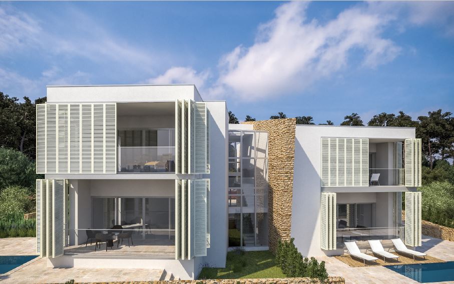 The villa has four apartments located on the island of Murter in the village of Murter, on the northern slopes of Raduč, overlooking the Kornati islands. The villa has four apartments of 71.75 m2 to 86.36 m2. Each apartment has two bedrooms, a spacio...