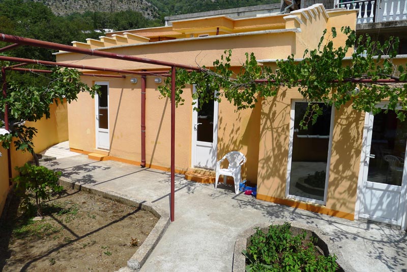 Сутоморе. Участок 279 кв.м 1-этажный дом пл. 61 кв. м (кухня-гостиная, 2 комнаты, санузел, терраса). Все коммуникации. Хорошее состояние. Продается с мебелью. Вид на море и горы. До пляжа 900 м....