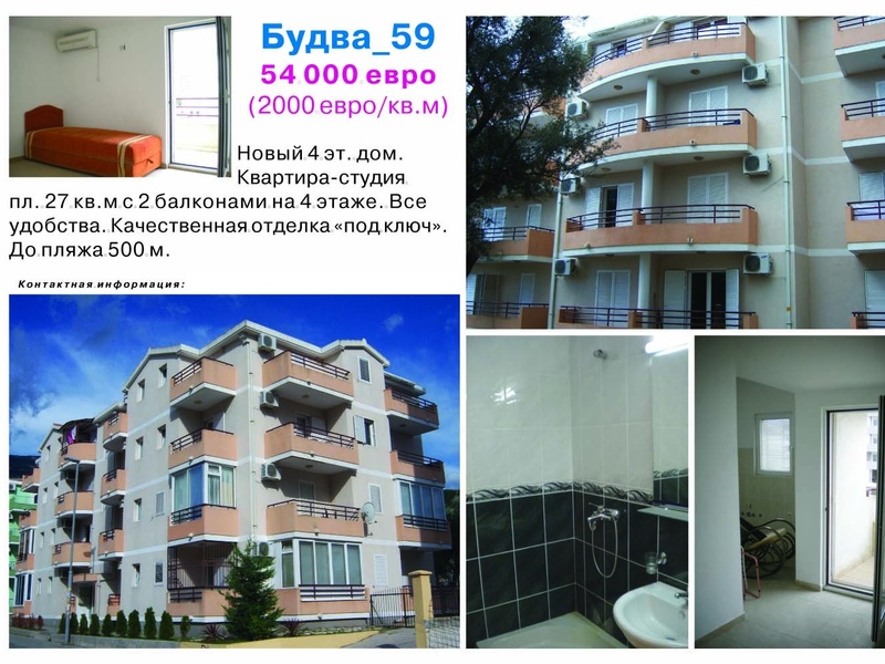 Будва. Новый 4 эт. дом. Квартира-студия пл. 27 кв.м с 2-мя балконами на 4 этаже. Все удобства. Качественная отделка "под ключ". До пляжа 500 м....