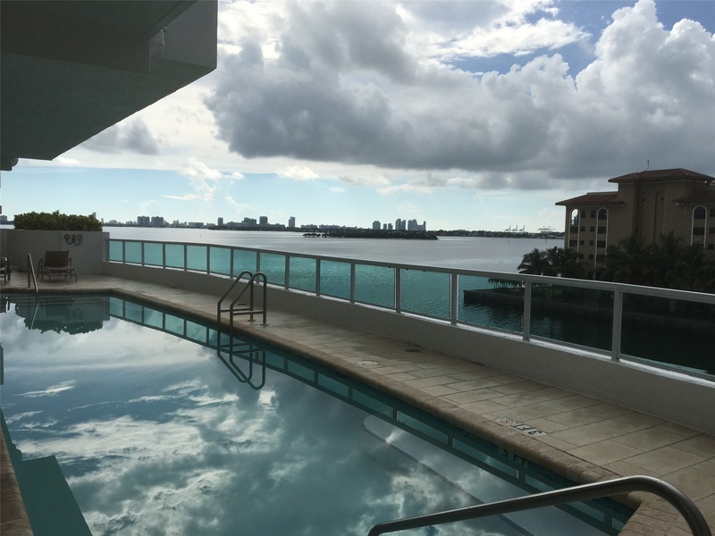 Угловая квартира в Майами с видами на залив; гостиная, спальня, ванная комната, гардеробная, балкон, современная кухня с гранитной столешницей и приборами из нержавеющей стали, плиточный пол, окна от пола до потолка. Кондоминиум имеет бассейн, фитнес...