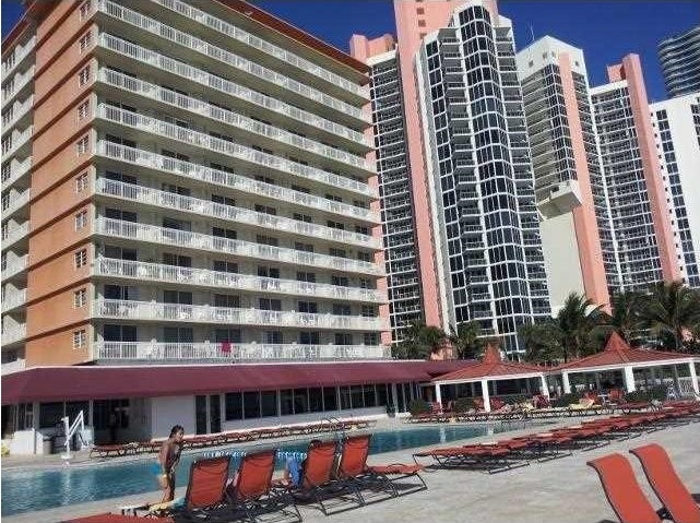 Студия в Санни Айлс на Коллинз-Авеню с большой террасой, недавно был проведен ремонт, пол сделан из керамики, улучшенные кухня и ванная комната, кухонные приборы из нержавеющей стали. Жилой комплекс включает в себя все удобства, в том числе бассейн, ...