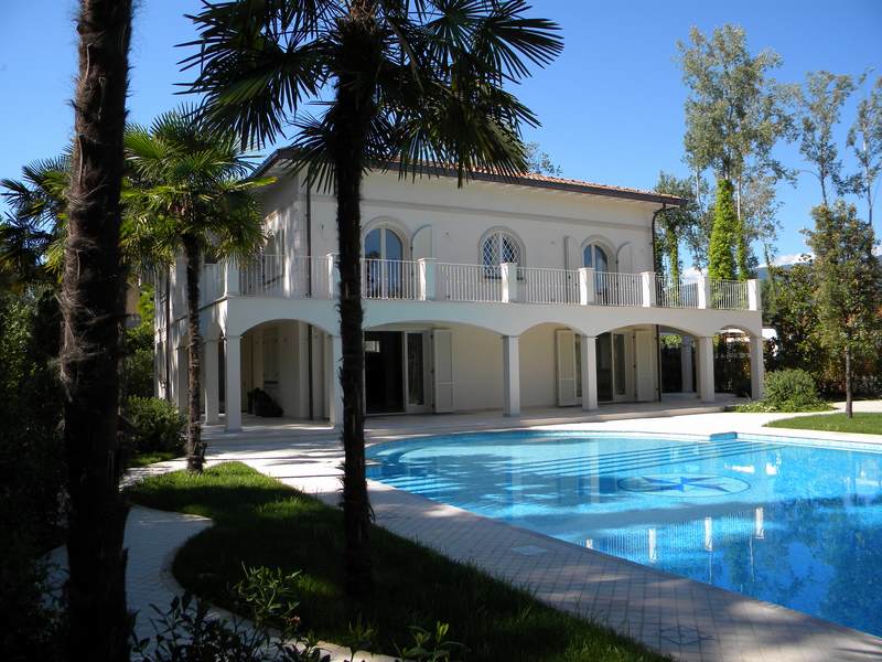 Форте дей Марми, резиденциальная престижная зона. Вилла с красивым садом и бассейном. Состоит: на первом этаже большая гостиная с камином и видом на бассейн, кухня с выходом на веранду оснащенную для обедов на свежем воздухе, гостевой туалет и дву...