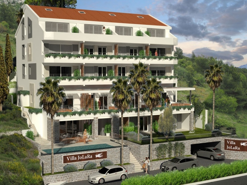 For sale new villa and a garage 36 sq.m. overlooking the sea and Petrovac. Terrace of 95 sqm Three residential floors, ground floor. Five bedrooms, five bathrooms. Maid's room with separate entrance. Garage for two jeeps. Austrian pool with automatic...